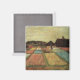 Champ de bulbes de Vincent van Gogh est une peinture de paysage floral post-impressionniste de style fin vintage représentant la nature. Un champ de ferme de fleurs printanières en fleurs avec un fermier marchant, le ciel est rempli de nuages d'orage gris. Une ferme est à l'arrière-plan.