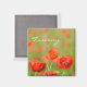 Aimant photo de fleurs de pavot rouge vibrantes dans un champ vert plein de pavots. Il a une forte émotion de bonheur, printemps et été. Il a le texte : 'Toscane'.