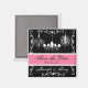 Ajoutez vos noms et date mariage à notre élégant lustre rose noir et blanc enregistrer l'aimant date facilement avant de commander. Recherchez les invitations de mariage assorties, des notes de remerciement, enregistrez les cartes datées, et bien plus encore avec ce design de lustre sombre et élégant.