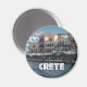 Les îles grecques de la Crète de Chania célèbrent les heureux souvenirs de cette île extraordinaire. Photo du port de La Canée avec des hôtels et des tavernes, avec le mot Crète dans la typographie amusante.