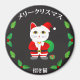 Chat chanceux habillé comme Père Noël avec une couronne de Noël. Un cadeau de Noël amusant et unique qui porte chance à vous. "Joyeux Noël" et "Maneki Neko (Chat chanceux)" en japonais.