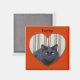 Chat noir contre arrière - plan tan, rouge et vert rayé (remplacer par votre image). Frame est un fil en forme de coeur coupé dans un premier plan rouge. Personnalisez avec le nom au sommet.
