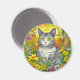 Joli chat blanc coloré et fleuris art floral jaune. Chat Ai et fleurs.
