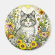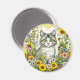 Art folklorique art ai art représentant un chat gris et blanc mignon assis dans des fleurs jaunes et blanches.