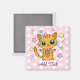 Pneuka rose et blanc dessin animé chaton orange aimant personnalisé.
