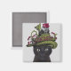 Aimant Chat noir avec théière et hibou