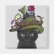 Chat noir avec théière et hibou par FabFunky. Comprend un chat noir avec une théière et une chouette au-dessus de la tête. | 191545D