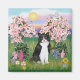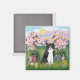 Aimant Chat noir et blanc - Fleurs