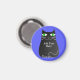 Fat de dessin animé noir gras aux yeux verts. Un joli personnage de chat. Magnets personnalisés avec effet d'impression ancien appliqués à l'image. Arrière - plan bleu. Modifier le texte pour customiser. Idée cadeau pour les amoureux de les chats.