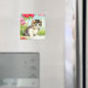Aimant avec un chaton blanc et brun mignon! Ce chaton aux yeux bleus est installé dans une pelouse verte entourée de belles fleurs roses et rouges. Un bon cadeau pour les amoureux de les chats et les amateurs d'art victorien !