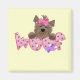 Un chien moelleux portant un arc rose et un texte qui dit "Woof" est présenté sur les t-shirts, sacs fourre-tout, autocollants, tasses, mousepads, et plus !