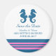 Élégant et classique cheval de mer nautique Sauvez l'aimant de date avec une paire de hippocampes simples et un ensemble de bandes en bleu marine foncé et rose. Ce thème de plage nautique enregistrer l'aimant de date peut être facilement customisé avec vos détails mariages. Pour plus d'options de personnalisation, cliquez sur le bouton Customiser.