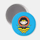 Regardez Chibi Wonder Woman debout au-dessus de son logo WW, avec des éclair, un point de polka rouge en arrière-plan, et son nom écrit au-dessus de la tête.