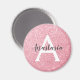 Chic et glam rose rose rose rose parties scintillant scintille l'aimant métallique, avec un gros monogramme blanc initial et votre nom personnalisé dans une élégante police de script gris. Personnalisez cet aimant tendance avec votre nom ou votre monogramme initial. Vous pouvez modifier la couleur du texte, le style et la taille de police à l'aide de l'option personnaliser.