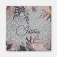 Sur une toile de fond damassée gris argenté, on retrouve des teintes rose, orange et rouge sur une image botanique florale chic qui peut être personnalisée avec un nom, une lettre, un logo ou une phrase. Vibes chic boho modernes.
