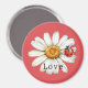 Aimant Chic Red White Daisy Flower Ladybug Love