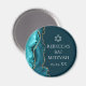 L'agate turquoise et or chic orne le côté de cet élégant aimant Bat mitzvah. Le nom de votre fille est écrit dans une belle écriture cursive sous l'Étoile de David. Un design moderne et tendance pour une jeune fille juive appelée à la Torah.