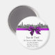 Chicago Skyline Etched Look 01 Invitation Suite Violet Purple Ribbon - Save the Date Magnet Élégante, chic et élégante invitations personnalisables et accessoires avec une vue en noir et blanc gravé de l'horizon de Chicago, Illinois. Il dispose également d'un arc en satin violet violet. Ce produit fait partie d'une suite de conceptions assorties qui sont facilement personnalisables pour de nombreuses occasions et événements. Si vous avez besoin de cartes RSVP assorties, notes de remerciements, timbres, magnets, étiquettes de bouteilles, menus, cartes d'escorte, programmes d'événements, étiquettes de faveur ou autres accessoires, veuillez consulter nos autres annonces. Si vous ne voyez pas un produit correspondant qui vous intéresse, ou si vous souhaitez voir ce design dans différentes couleurs ou avec différentes photos NYCisMyMuse que vous voyez dans notre magasin, veuillez nous contacter et nous serons heureux de vous accueillir. Veuillez noter qu'il s'agit d'une conception graphique / photo qui est transférée au produit sous-jacent, et ne contient aucun tissu réel, ruban, métaux, gravure, pierres précieuses ou gaufrage. 2013 ©NYCisMyMuse Tous droits réservés