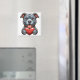 Illustration colorée d'un chien heureux tenant un coeur représentant l'amour et l'affection dans un style ludique.