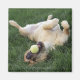 Aimant Chien allongé dans l'herbe avec balle de tennis