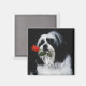 Un Chien Chih Tzu reproduit une photo tenant un rose dans la bouche.