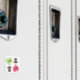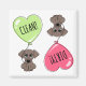 Magnet de lave-vaisselle sale mignonne avec de mignons chiens de chiot en bande dessinée avec des ballons en forme de coeur, un vert et un rose.