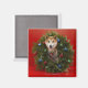 Aimant Chien de Shiba Inu assis sur la couronne de Noël