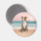 Aimant Chien Pitbull mignon assis sur la plage avec couch