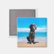 Un mignon chien Weimaraner assis avec un arrière - plan coloré, une idée cadeau parfait pour quelqu'un qui aime cette race de chien.