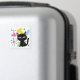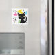 Illustration colorée de style abstrait du milieu du siècle avec chat noir, étoiles noires et formes géométriques colorées décoration sur arrière - plan blanc