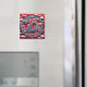 Dragon bleu chinois inspiré d'une image traditionnelle coupée en papier avec des nuages blancs devant un arrière - plan décoré (modèle n°3). Happy New Year est personnalisable avec Red Chinese Ideograms. Conception sur aimant Carré. Carte de voeux, carte postale, autocollant et tasse.