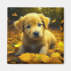 Aimant Chiot jaune du Labrador jouant dans les feuilles d