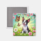 Aimant Chiot mignon avec fleurs et papillons