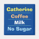 Employé de bureau Choix de boisson, lait et sucre aimant de préférence. Aimant qui indique le nom du membre du personnel et son choix de café ou thé, lait et sucre Préférence