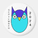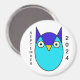 Imaginez un petit aimant rond avec un arrière - plan blanc propre. Au centre se trouve une chouette bleue vibrante, ses plumes riches de différents tons de bleu, du cobalt profond au bleu ciel plus clair. Le hibou a de grands yeux percés qui lui donnent une expression alerte et sage. Ses ailes sont bien collées sur ses côtés, tandis que de petits détails comme des taches blanches ou des accents bleus plus clairs ornent son corps, ajoutant de la texture. Le bec du hibou est pointu et pointu, peut-être d'une couleur contrastée comme l'orange ou le noir, se détachant contre les bleus cool. Ses pieds sont petits, reposant doucement sur la surface blanche de l'aimant. L'ensemble est simple mais frappant, le contraste entre la chouette bleue et l'arrière - plan blanc créant un cadre charmant et attrayant.