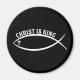 "Jésus Poisson" (autrement appelé les Ichthys), qui a une croix pour un oeil. Texte ci-dessus : "Christ est roi".