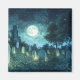 Concept d'Halloween, cimetière enchanté avec pierres tombales brillantes et illustration pleine lune.