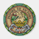 L'insigne de l'emblème du lion Clan Currie est entouré d'une courroie et passe au-dessus de l'arrière - plan tartan. Texte personnalisé.