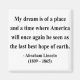 "Mon rêve est d'un endroit et d'une époque où l'Amérique sera à nouveau considérée comme le dernier meilleur espoir de la terre." - Abraham Lincoln