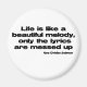 Lifes Lyrics soumission design. Disponible sur T-shirts, sweatshirts, mousepads, boutons, porte - clés, autocollants, tasses à café, etc.
