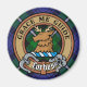 Clan Forbes crête badge entouré d'une sangle et boucle sur l'arrière - plan tartan. Texte personnalisé.