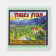 étiquette vintage de caisses de fruits de Claremont, Los Angeles, Californie. Superbes montagnes enneigées, orangeraies et citronniers, vallée et eau au loin et une belle maison de style espagnol. Valley View est coloré, dynamique et unique.
