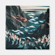 Coastal Energy: This vibrant flat vector illustration captures the dynamic beauty of a rocky beach from an overhead perspective. Dark blue and orange ames life to the scene as waves crash onto the shore, creating a captivating contrast Geometric shapes add depth, while detailed textures on rocks and plants bring a natura natural feel to this stylized artwork. The minimalistic design emphasizes movement and energy, making it a perfect piece for those looking to add bold and modern coastal vibe to their collection.