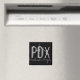 Aimant carré avec PDX - Abréviation aéroport pour Portland International Airport, Portland, Oregon. Texte gris urbain grineux