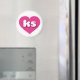 Cet aimant est doté d'un coeur rose vif et chaud contenant les lettres coques inférieures arrondies et blanches, une abréviation ludique pour Kansas, l'état du tournesol.