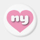 Cet aimant est doté d'un coeur rose vif contenant les lettres coques basses rondes et audacieuses, blanches, une abréviation ludique pour New York, l'Empire State.