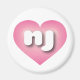 Cet aimant est doté d'un coeur rose avec un centre blanchi contenant les lettres coques inférieures nj, rondes et blanches, une version ludique de l'abréviation pour le New Jersey, l'état du jardin.