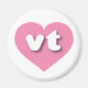 Cet aimant est composé d'un coeur rose cool et calme contenant les lettres coques basses vt, pleines d'audace, blanches et arrondies, une abréviation ludique pour l'état du Vermont, l'état de montagne vert.
