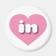 Cet aimant est doté d'un coeur rose vif contenant les lettres coques inférieures arrondies, blanches et audacieuses, une abréviation ludique pour Indiana, l'état hoosier.