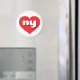 Cet aimant présente un coeur rouge vif contenant les lettres coques basses rondes et audacieuses, blanches, une abréviation ludique pour New York, l'état de l'empire.